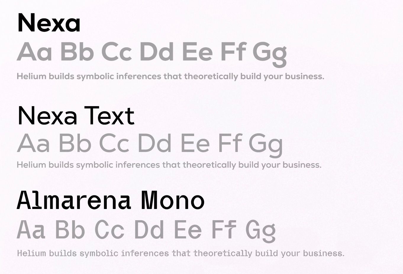 Quitador, Glober, and Frutiger have been our daily driver typefaces for eons, and they all still hold up very well. But it’s time for a change. Like replacing a beloved car for something a little more sleek and adventurous, Nexa and Nexa Text will be our main squeeze. We also added Almarena Mono to add some pop and flair to our visuals.